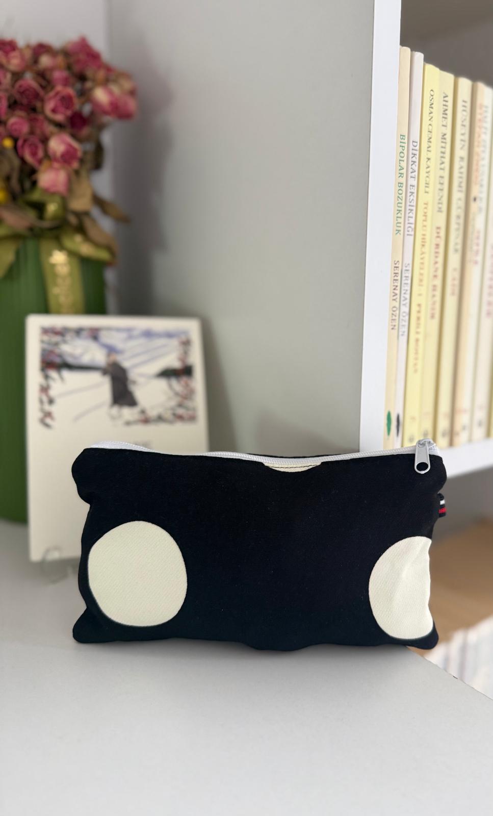 Beyaz Puantiyeli Fermuarlı Astarlı Makyaj Çantası ölçüleri 18-10 cm dir.